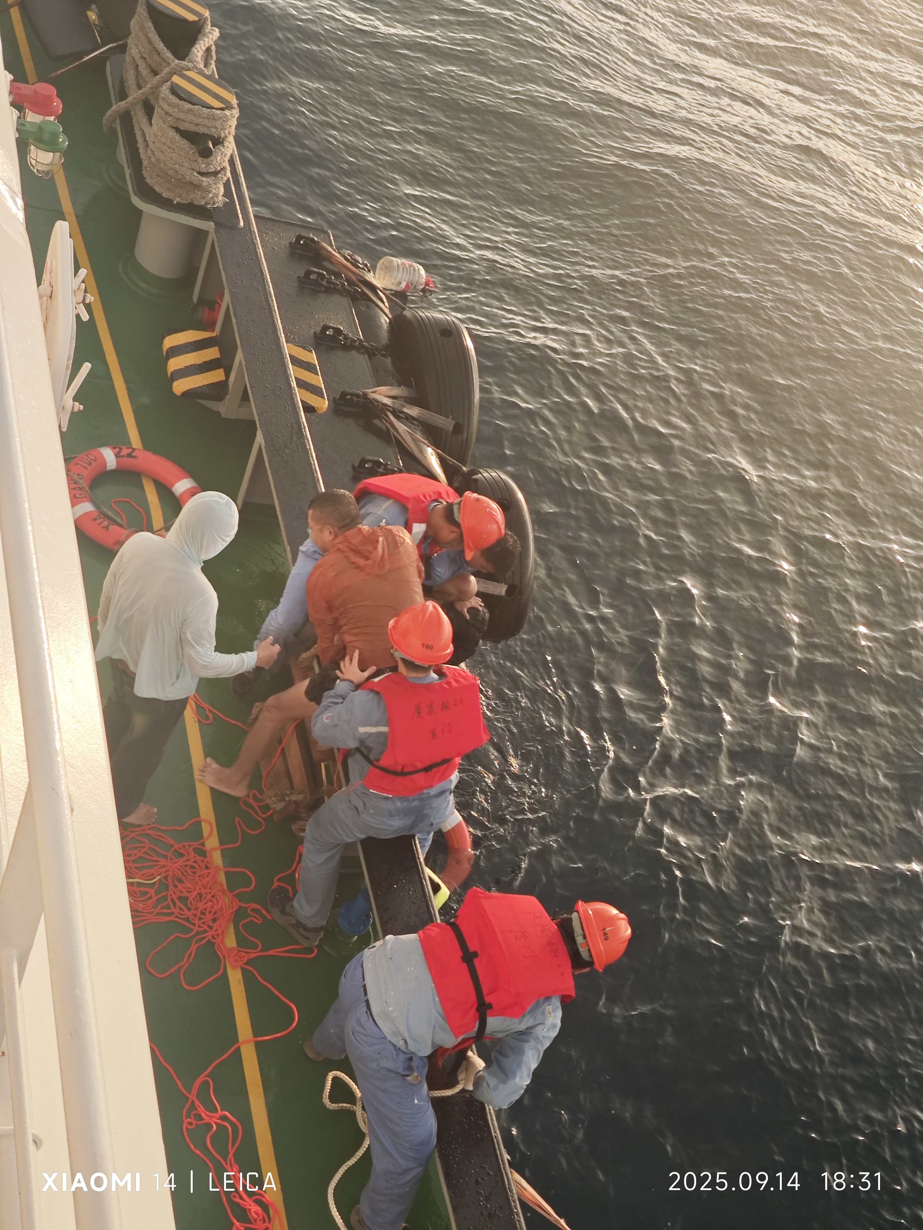 2025-09-172025年9月14日下午,受强对流天气影响,洋浦气象台发布雷雨大风黄色预警,提示海面可能出现7~9级大风并伴随强雷电。17时41分,国投厦港拖轮调度接到海事局紧急指令:一艘渔船在洋浦港外2号锚地突遭强风翻扣,7人落水,情况十分危急,请立即安排就近拖轮前往救助。