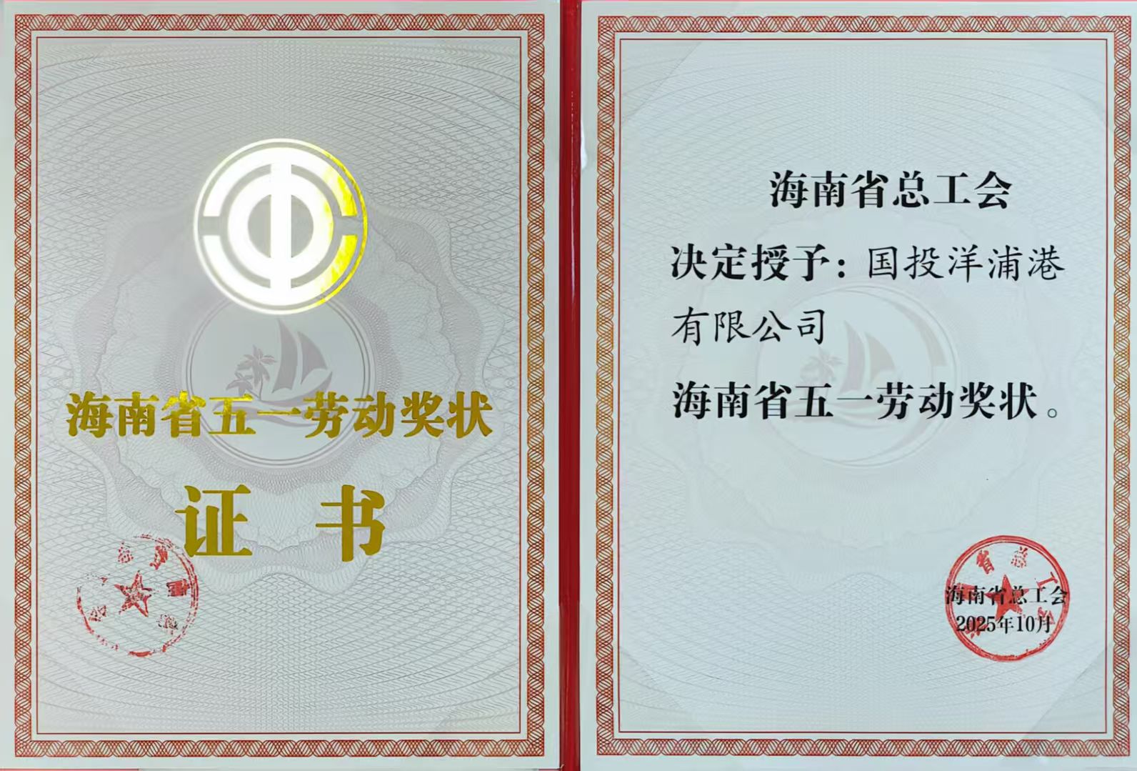荣誉见证奋斗,未来更添干劲。国投洋浦港将以此次荣获“海南省五一劳动奖状”为新的起点,大力弘扬劳模精神、劳动精神、工匠精神,持续深化港产融合、绿色转型、数智升级,在海南自贸港封关运作攻坚战中再立新功,为区域高质量发展贡献国投力量!